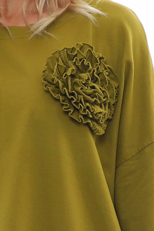 Billie Rosette Cotton Sweat Top Moss