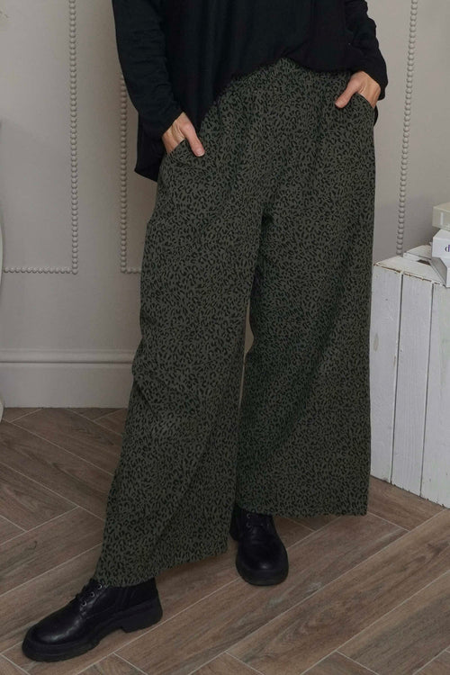 Sidonie Leopard Needlecord Trousers Khaki