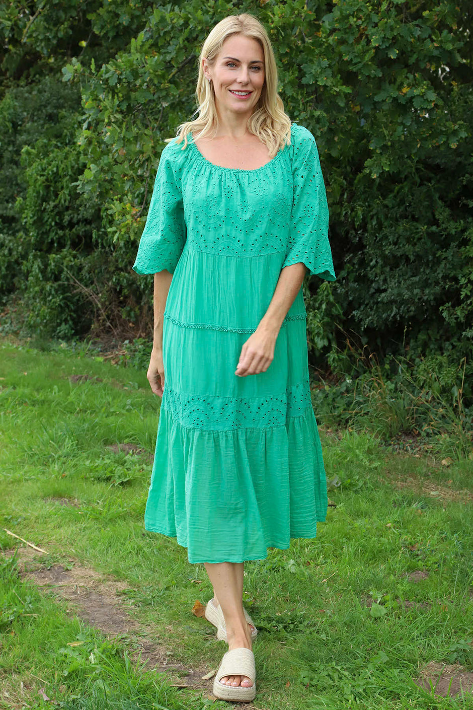 Nadia Broderie Anglaise Cotton Dress Emerald
