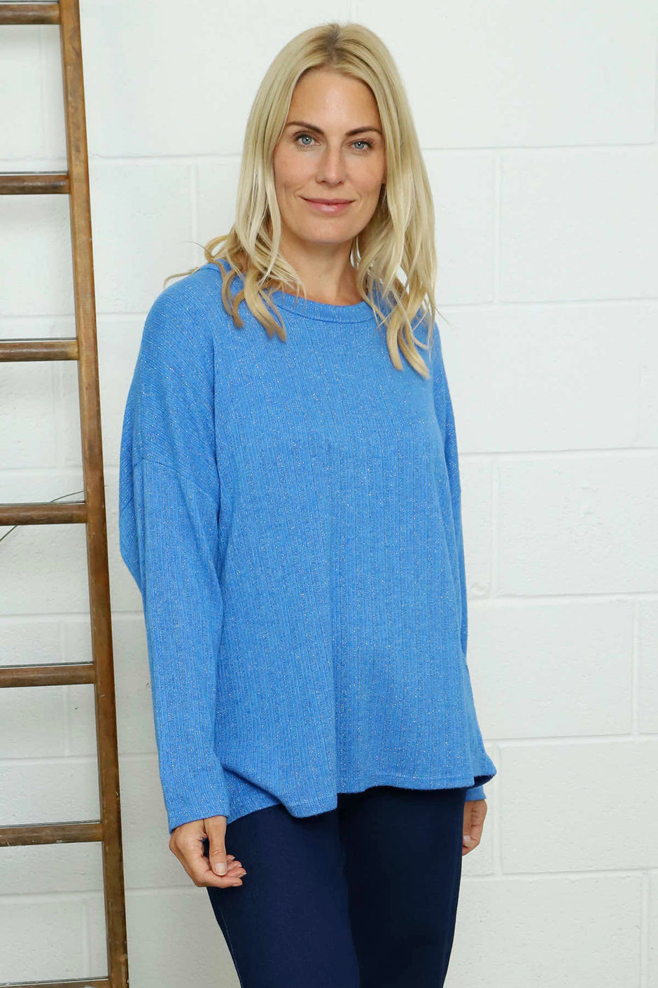 Sierra Sparkle Stripe Knitted Top Cobalt