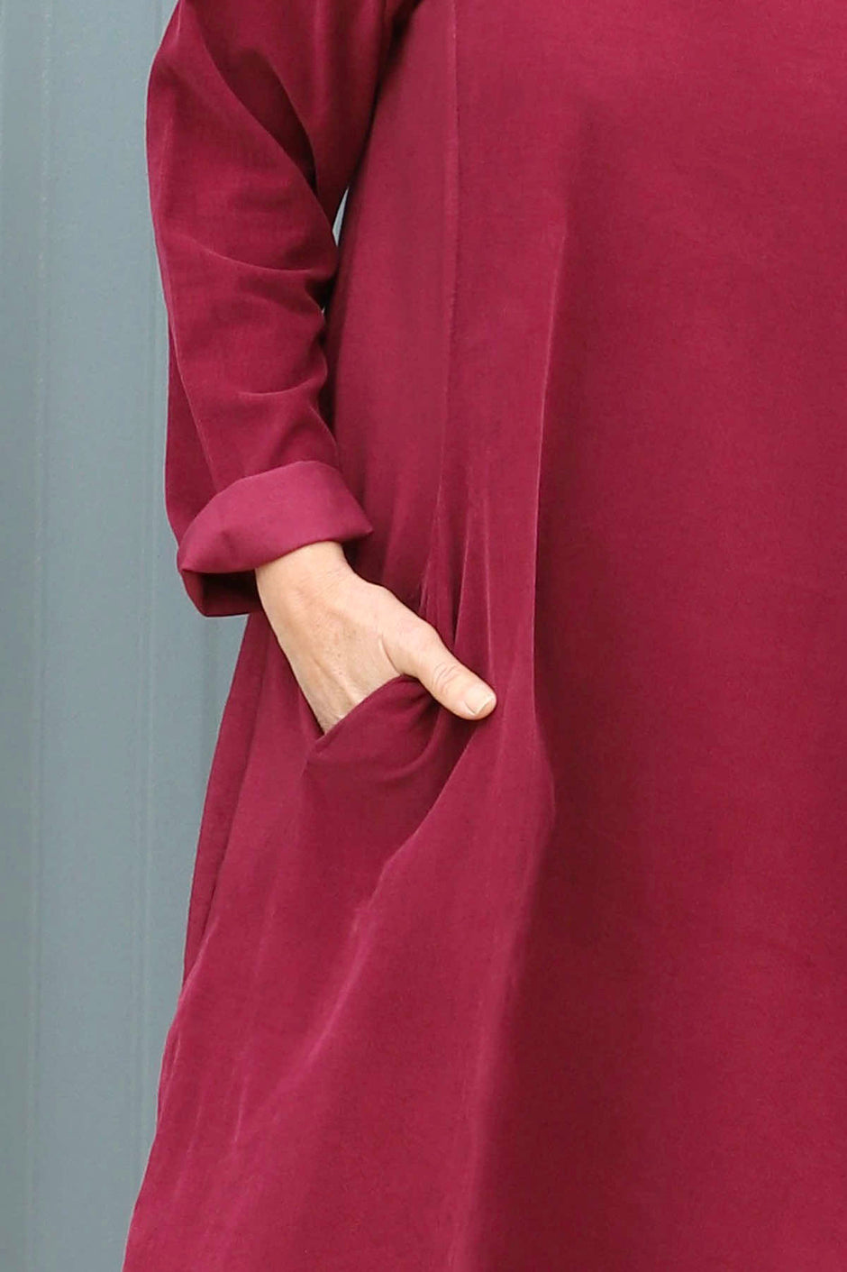 Dinah V-Neck Needlecord Dress Burnt Orange
