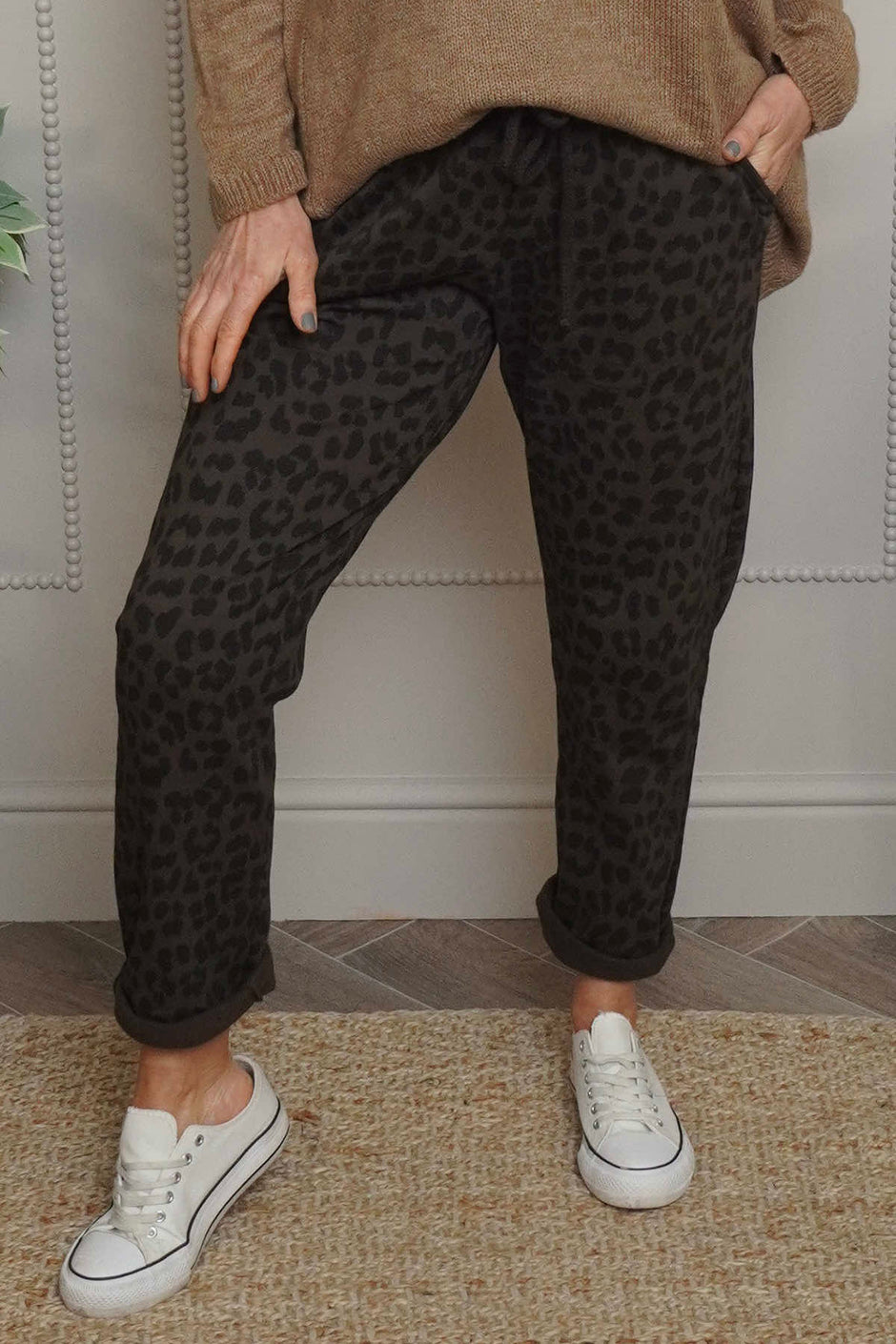 Effie Leopard Print Cotton Joggers Charcoal