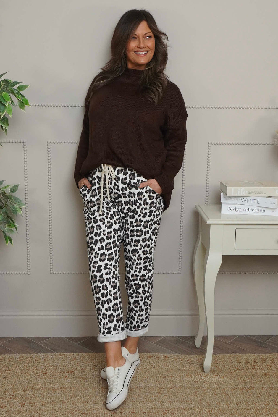 Effie Leopard Print Cotton Joggers Cocoa