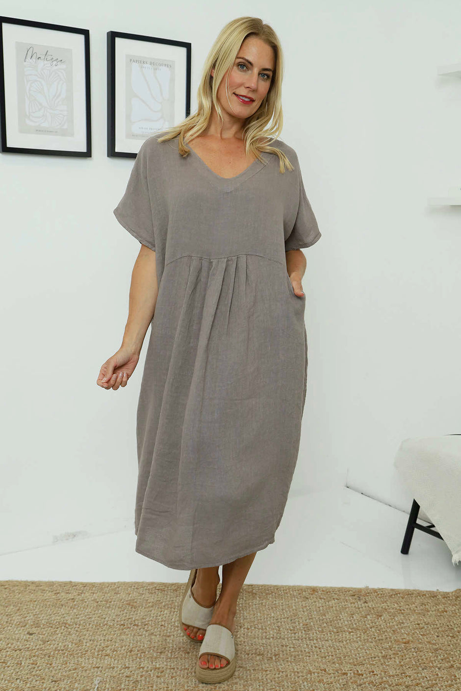Ellerie V-Neck Linen Dress Stone
