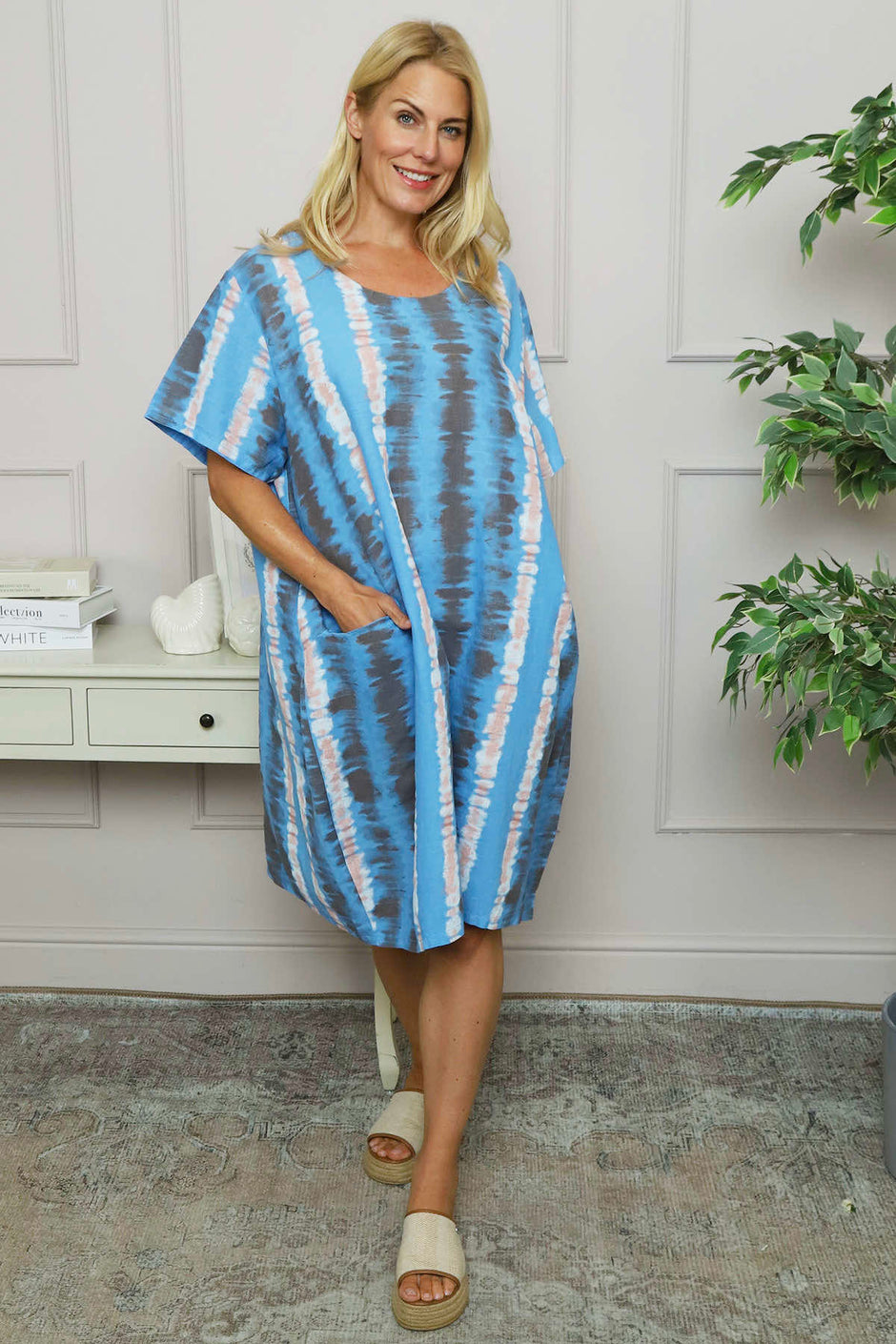 Milana Pattern Linen Dress Stone