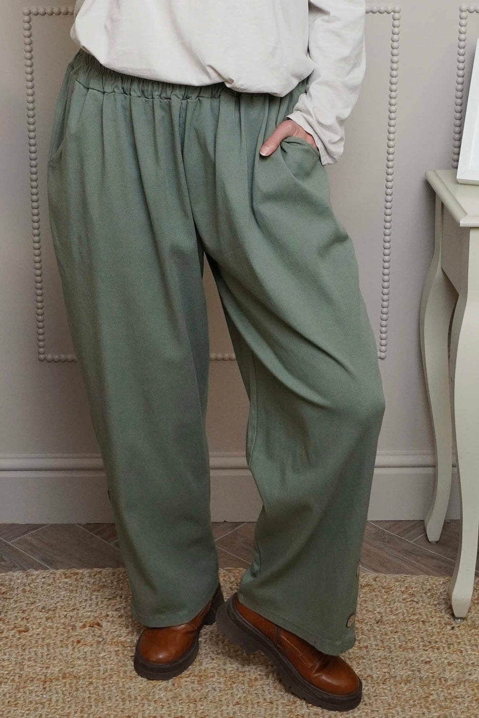 Experience the luxury of premium fabrics and impeccable craftsmanship with our plus-size trousers, crafted with attention to detail and a commitment to quality. Soft, breathable fabrics and thoughtful design elements ensure all-day comfort, while stylish details add a touch of sophistication to every ensemble. With a variety of colours, patterns, and textures to choose from, Kit and Kaboodal’s trousers allow you to express your personal style with ease. Made in Italy, our fabrics are crafted with years of experience and a love for quality products.