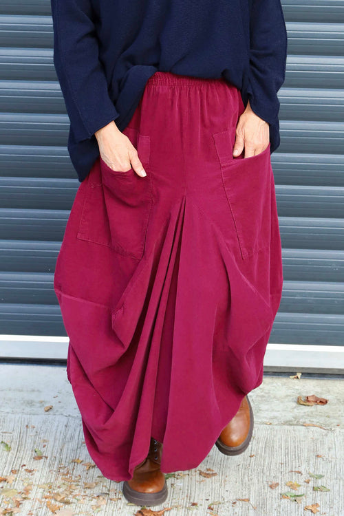 New InAvailable to Pre-OrderMade in Italy Made in ItalyOrla Needlecord Parachute Skirt Burgundy