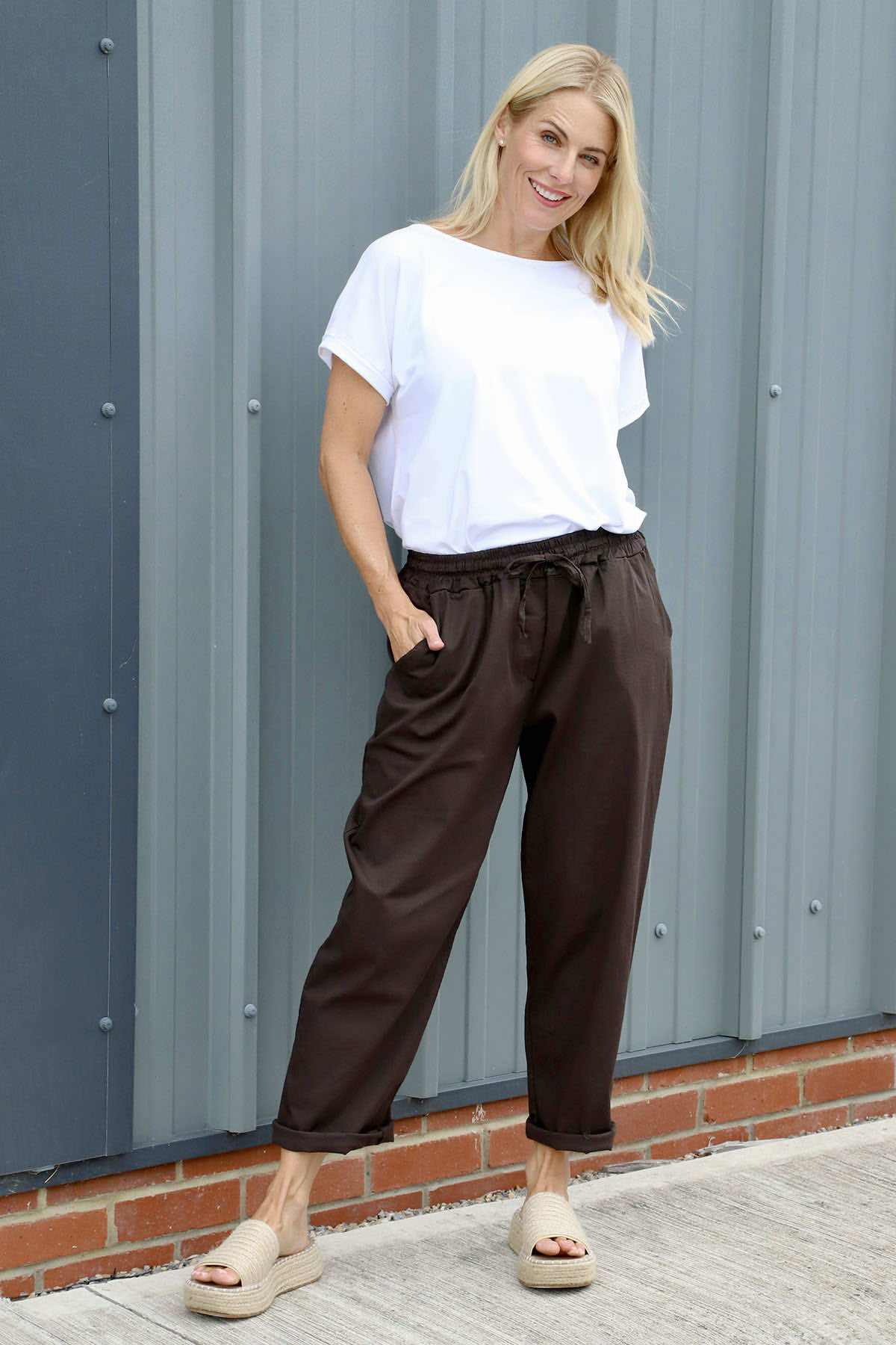 Experience comfort and confidence with the Bethany Cotton Trousers. Crafted from soft cotton, these trousers feature an elasticated waist and adjustable drawstring for a perfect fit. Practical pockets add convenience, making them ideal for everyday wear. Designed to support your active lifestyle while keeping you comfortable all day long.
