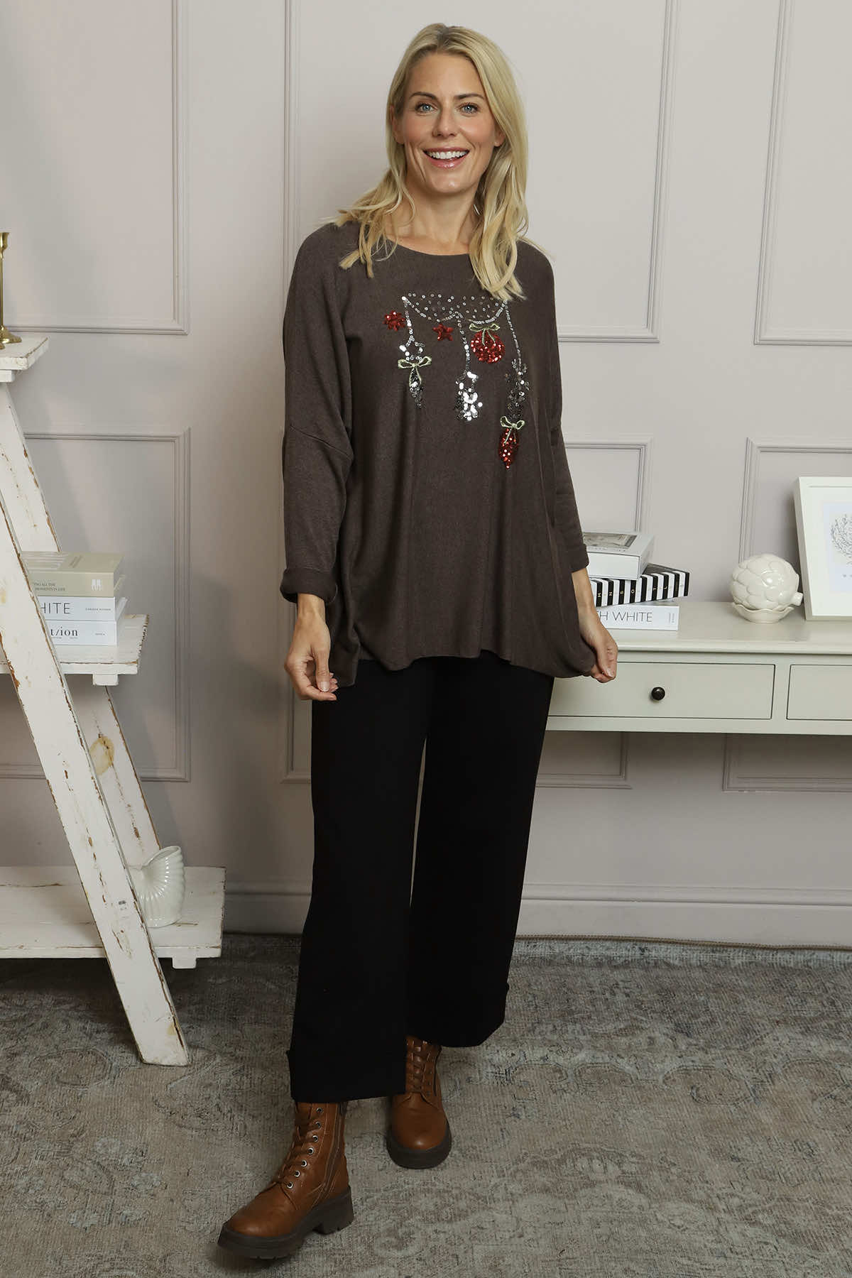 Sparkle this festive season with the Lillian Christmas Jumper. Designed with long sleeves and a classic round neckline, it offers cosy comfort for chilly days. The sequin bauble design adds a festive shimmer, making it an ideal choice to celebrate the holidays in style and warmth.