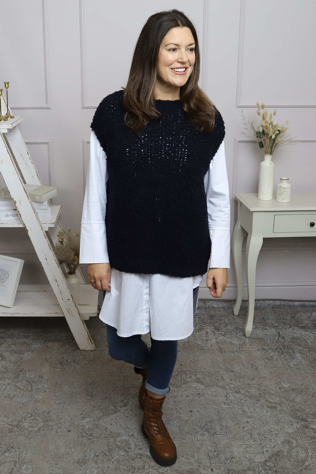 Layer up with the Clancy Boucle Tank Top, your new go-to piece for versatile warmth. Crafted from a luxuriously cosy knit with distinctive boucle texture, this tank brings depth and dimension to any outfit. The rounded neckline offers a flattering, timeless silhouette that works beautifully on its own or paired with your favourite cardigans and blazers. Embrace comfort without compromising on style.