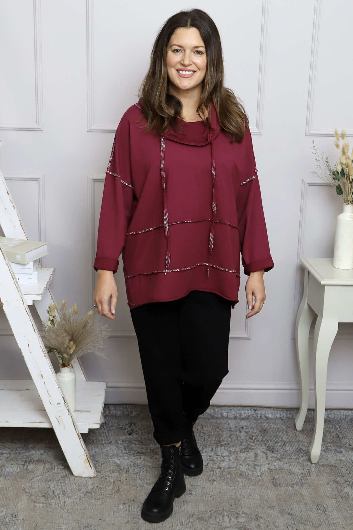 Clarina Cowl Neck Cotton Top Burgundy Burgundy - Clarina Cowl Neck Cotton Top Burgundy Burgundy