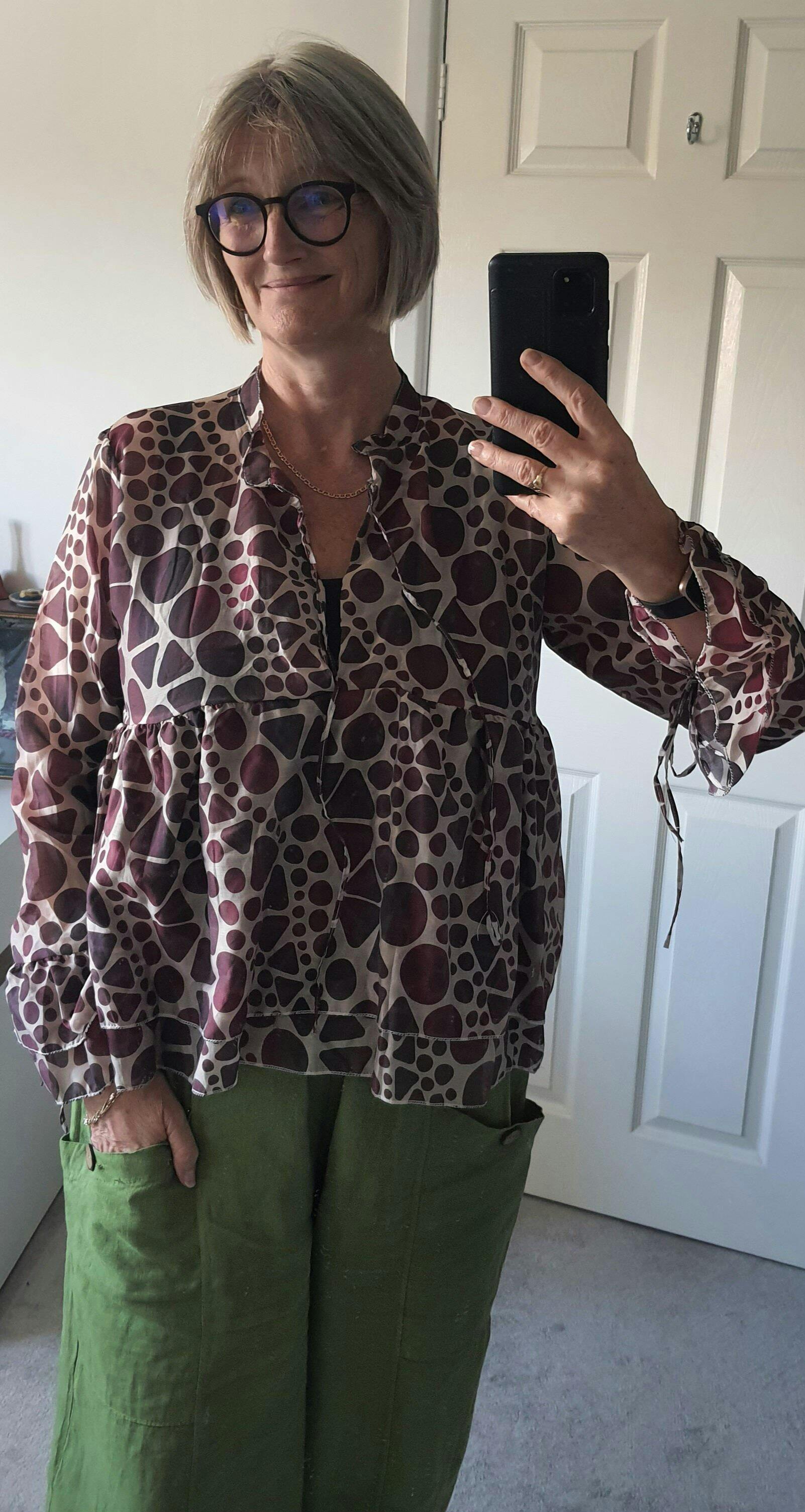 Edith Print Tie Front Top Burgundy