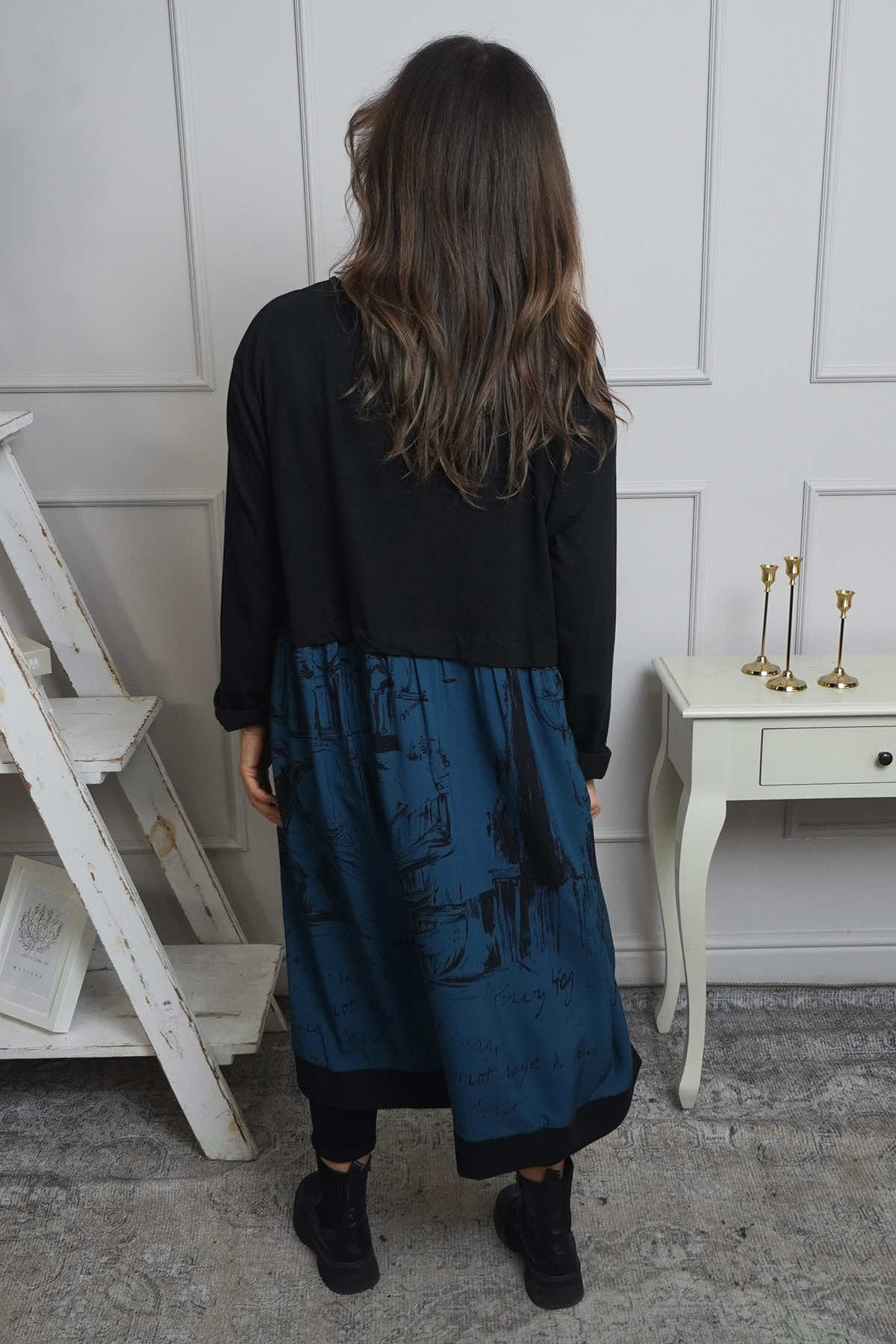 Janette Print Cotton Dress Teal Teal - Janette Print Cotton Dress Teal Teal