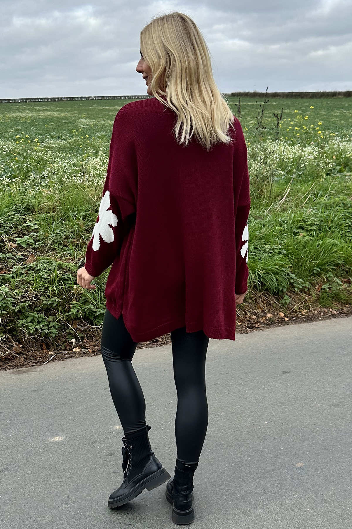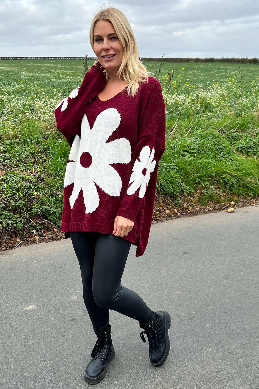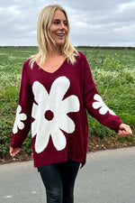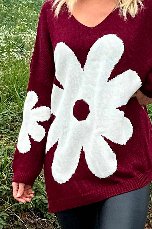 Upgrade your wardrobe with our Joan Knitted Jumper. Its V neckline brings a touch of elegance, while the large flower design on the body and sleeves adds a stylish touch. Made with soft knit material, this best-selling jumper is a must-have for the season.