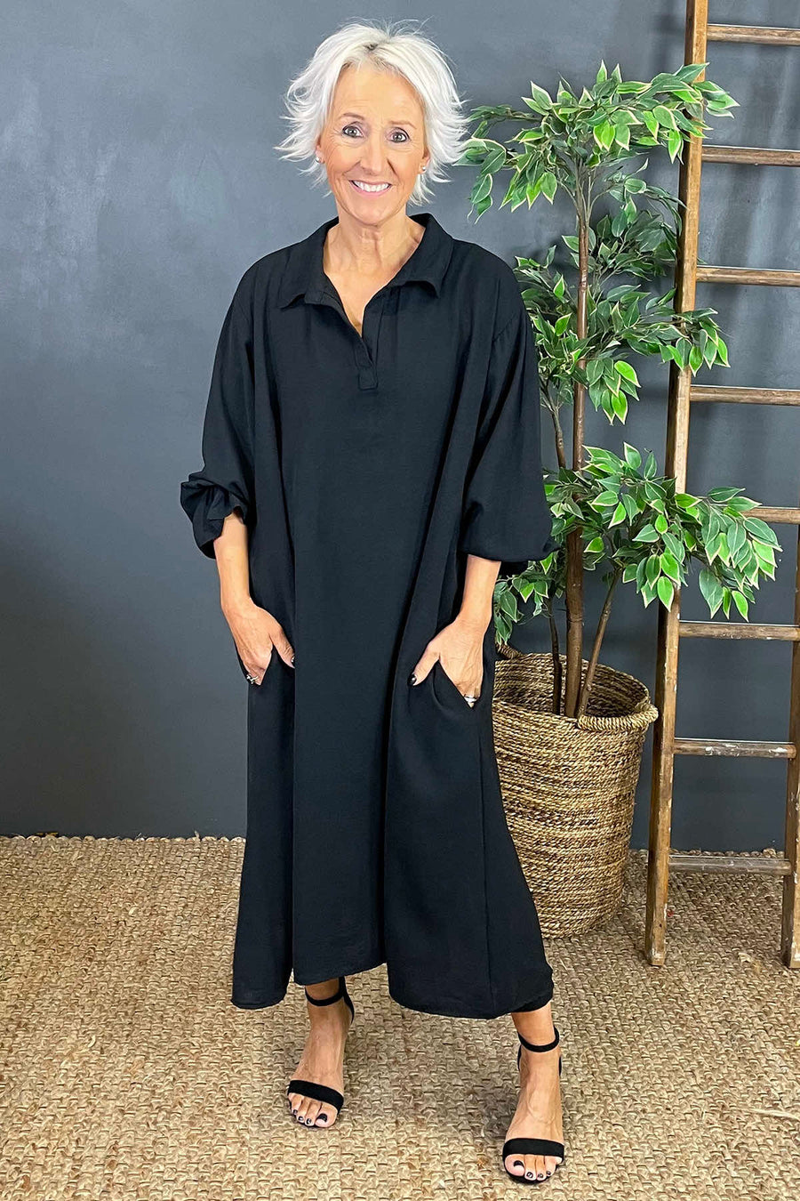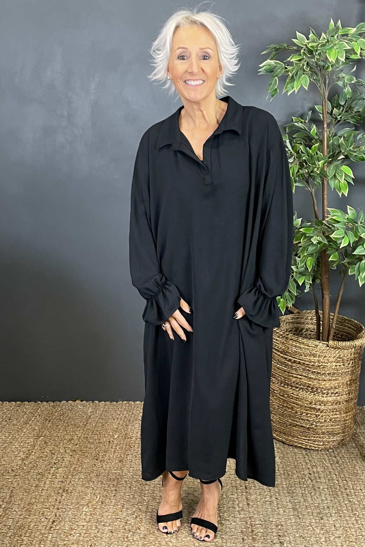 Elevate your wardrobe with our Kaya Collared Dress. Perfect for the upcoming season, this versatile dress features frilled cuff details and a classic collar. Simply add your favourite and jewellery for an effortlessly chic look. Timeless and sophisticated, this dress will become your go-to for any occasion.