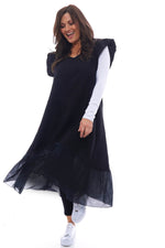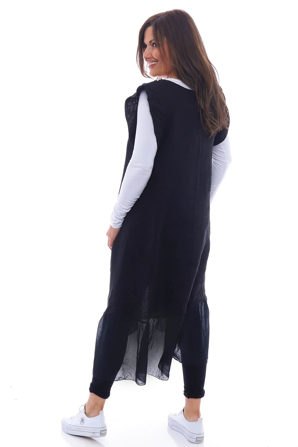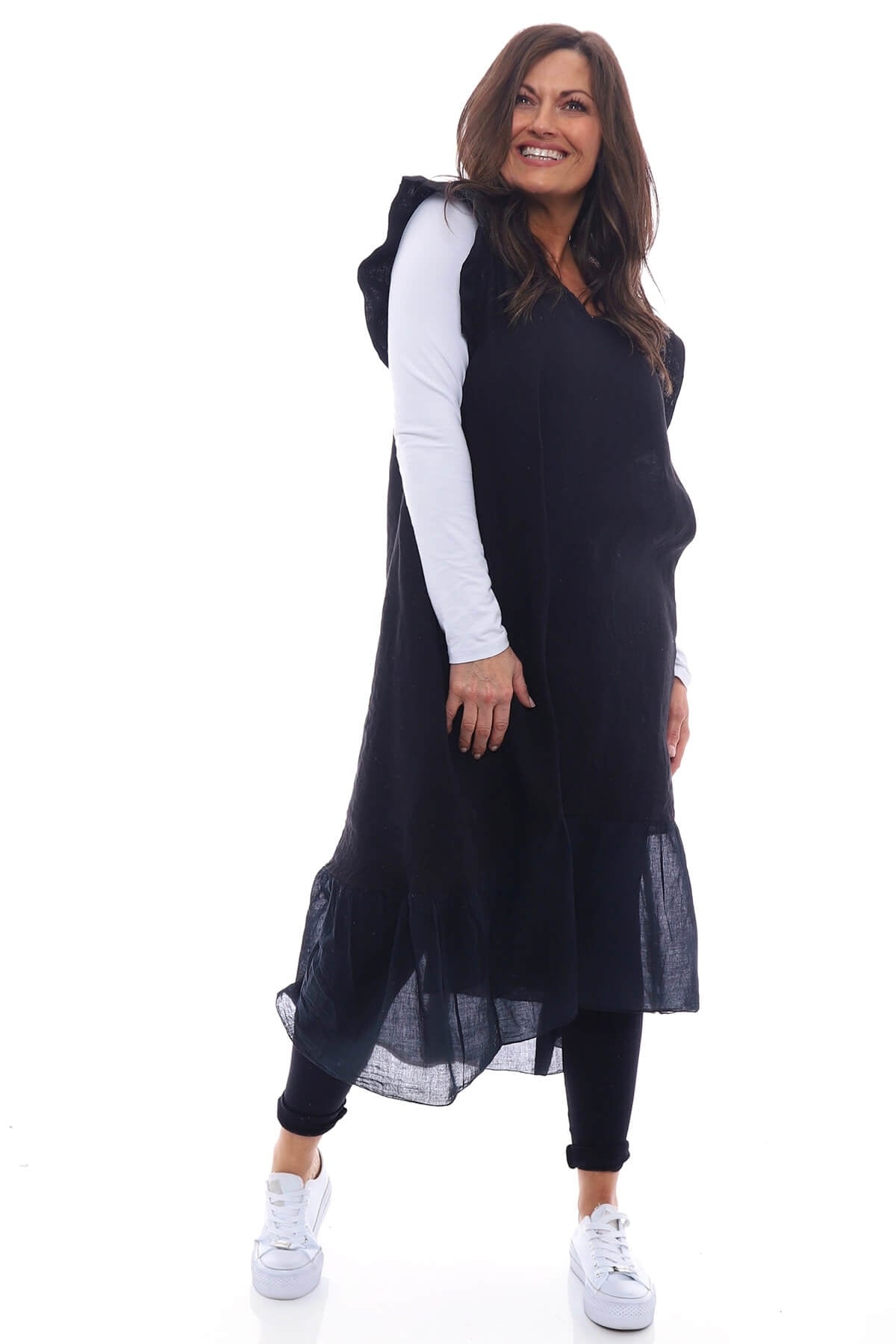 Alaysia Frill Linen Dress Black Black - Alaysia Frill Linen Dress Black Black
