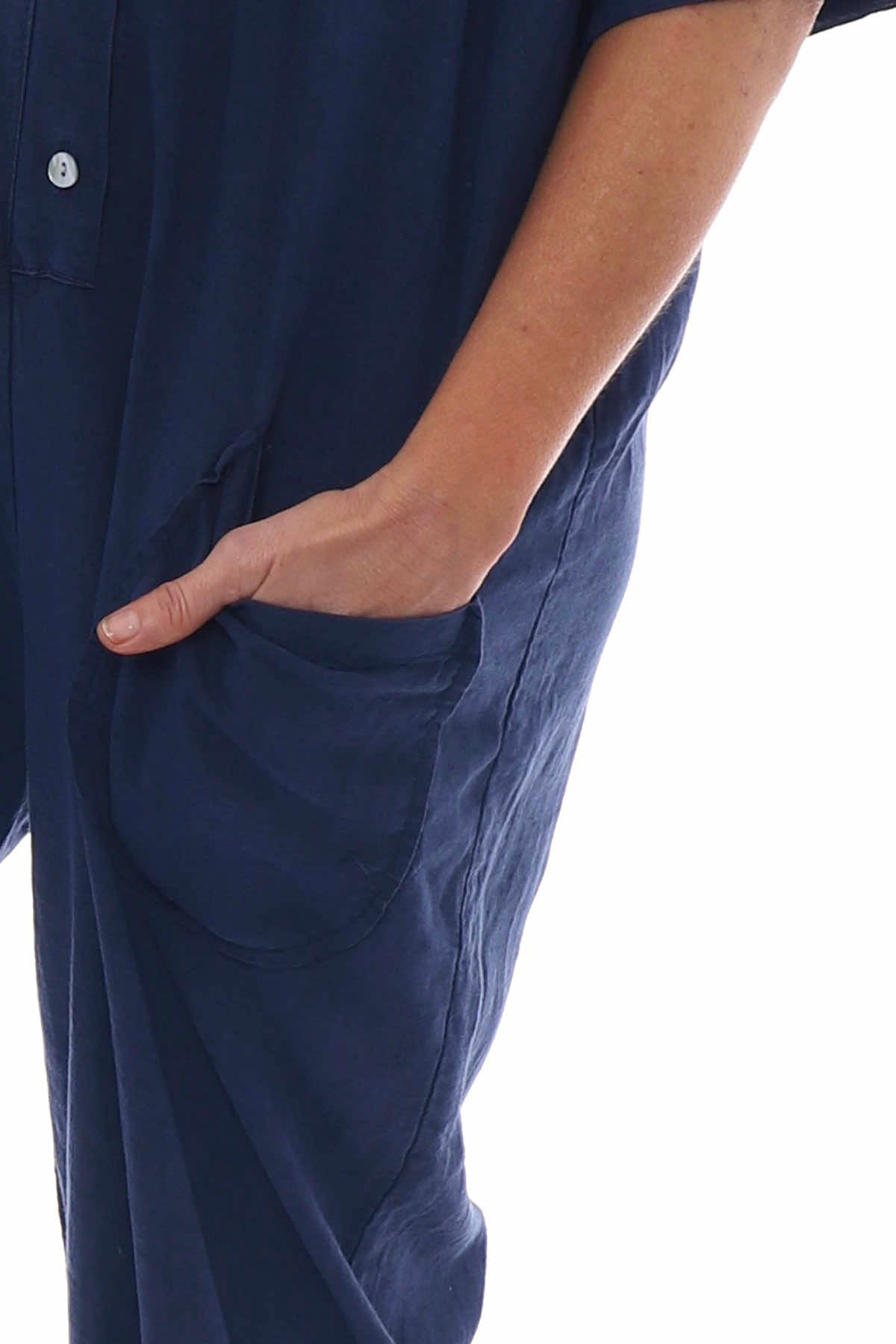 Johari Short Sleeve Linen Boilersuit Navy Navy