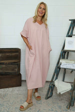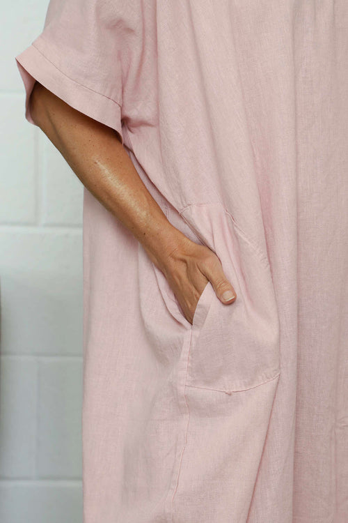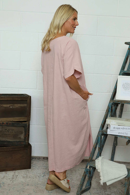 Marika V-Neck Linen Dress Pink