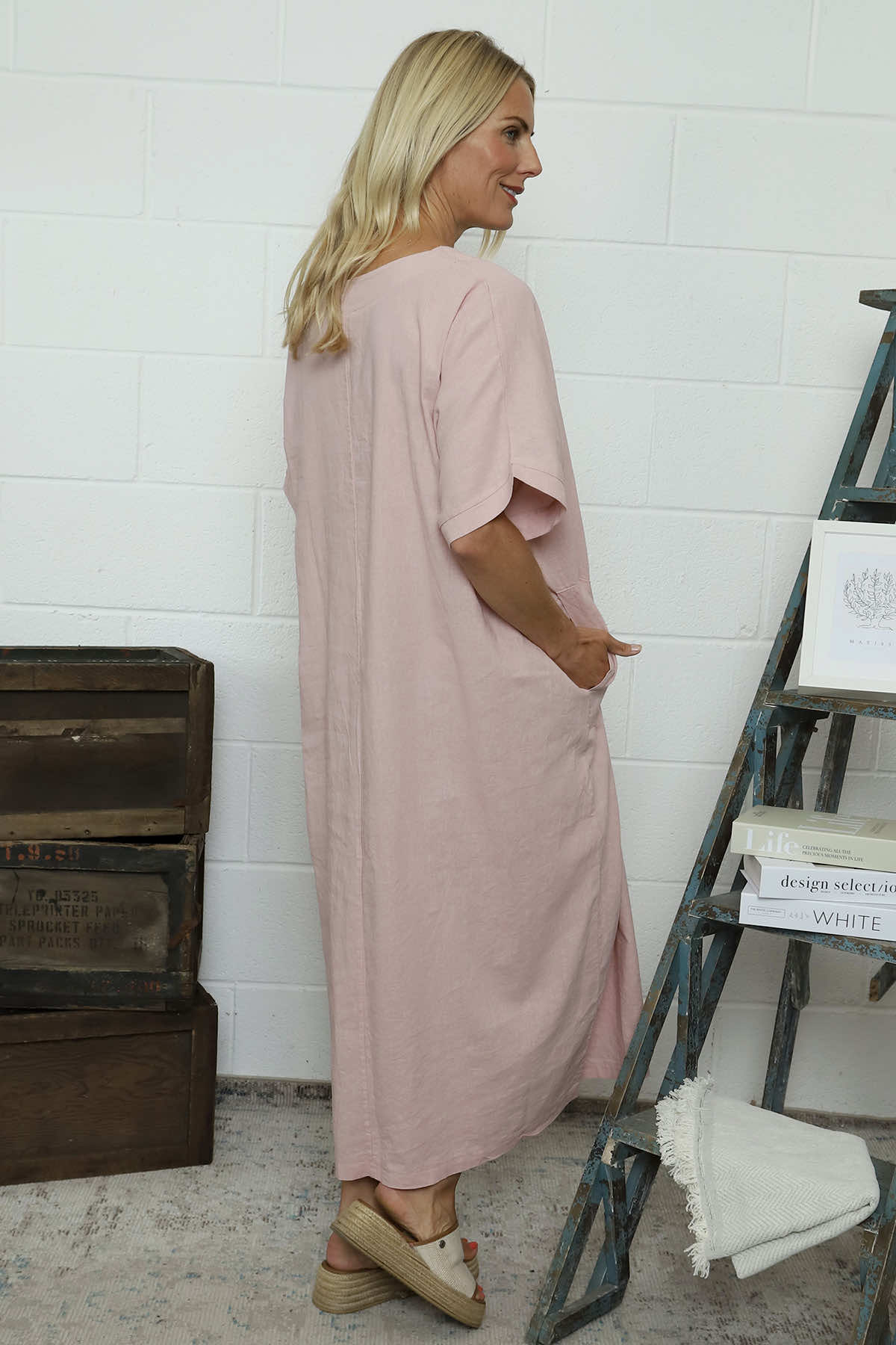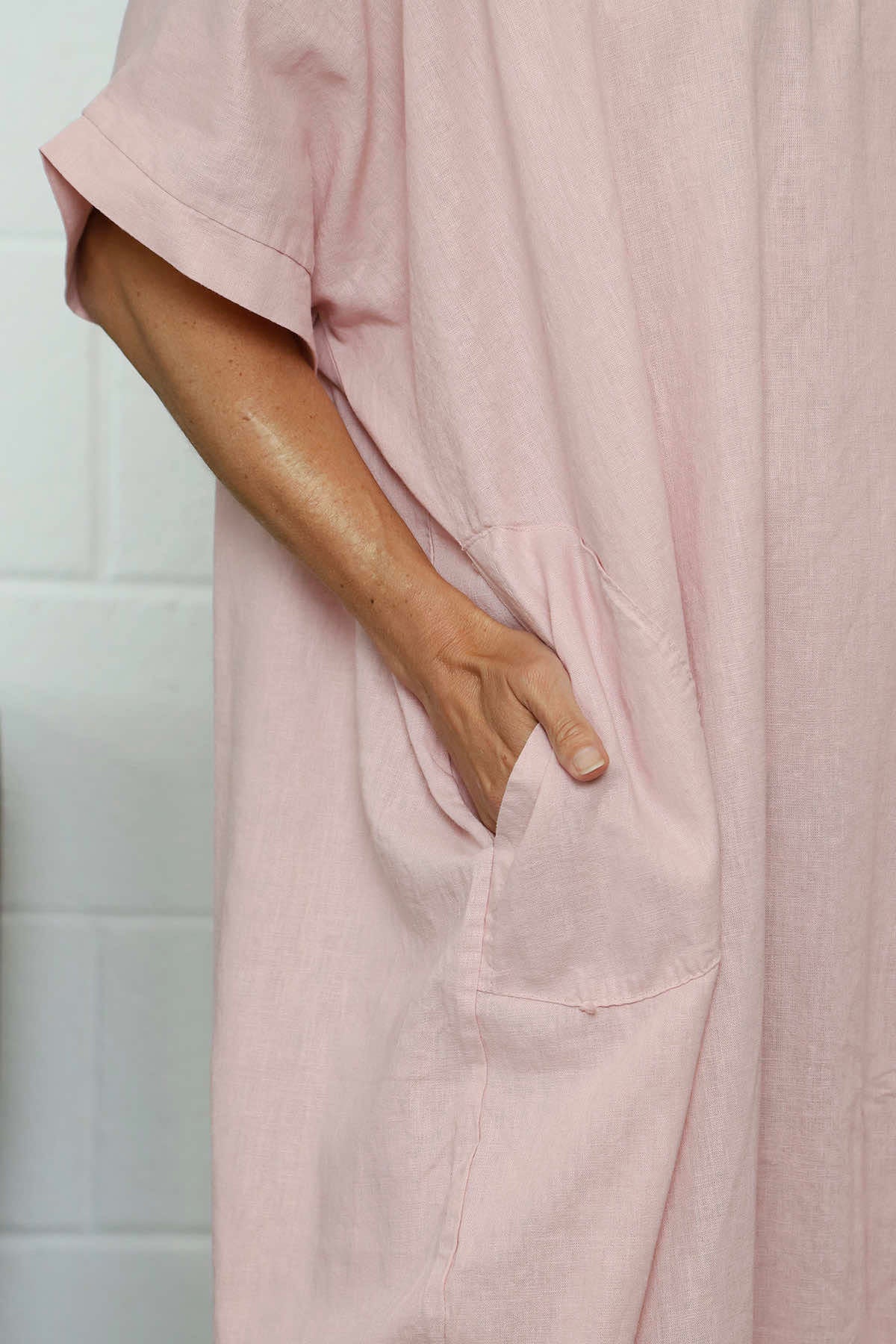 The Marika V-Neck Linen Dress combines comfort with effortless style. Crafted from a breathable linen mix fabric, this versatile dress features a flattering V-neckline, practical short sleeves, and convenient pockets. Perfect for warm weather outings or casual everyday wear, it offers both functionality and timeless elegance.