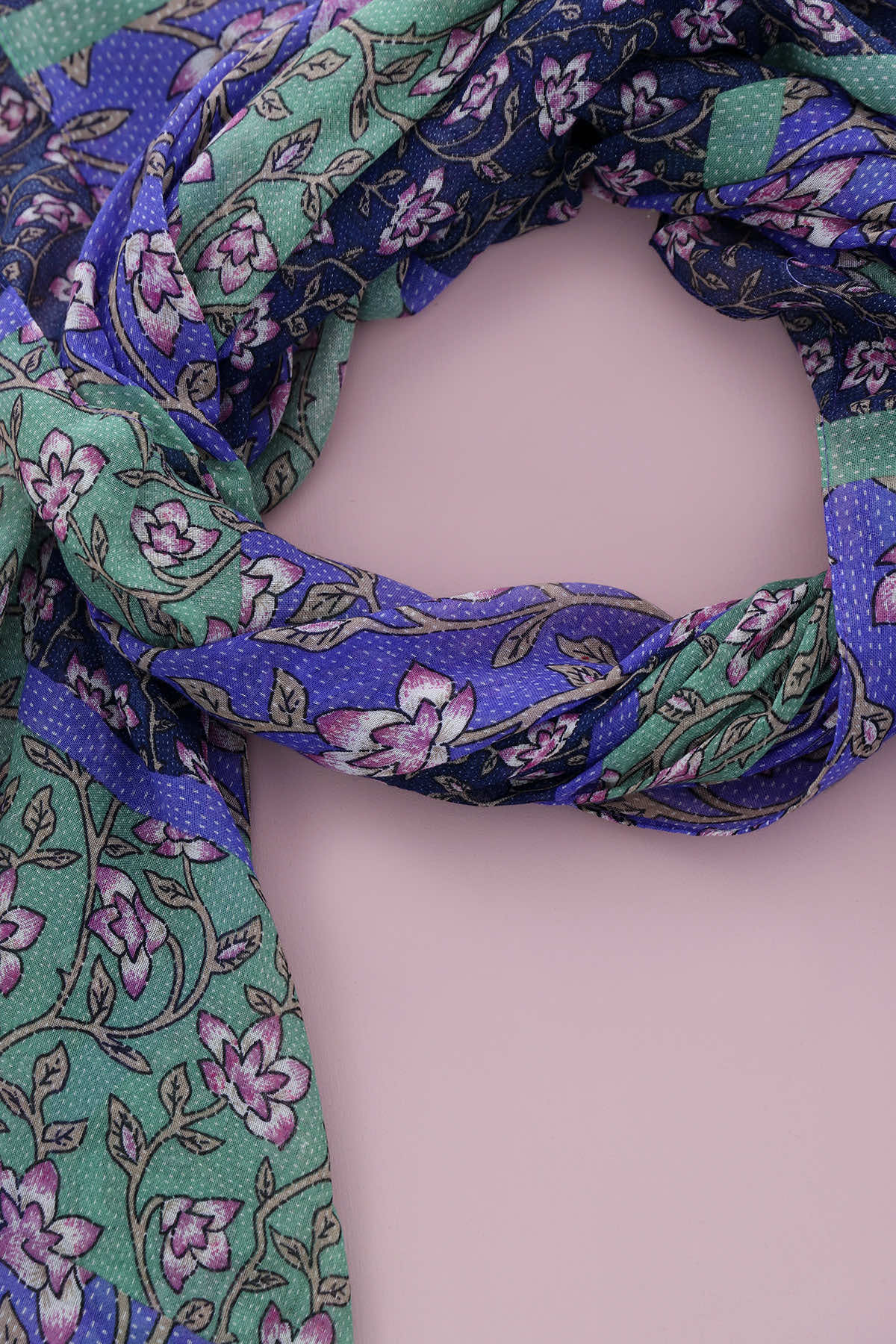 The Meera Scarf features a beautiful panelled floral design and delicate raw edge detailing. Made with lightweight material, it is perfect for adding a touch of elegance and femininity to any outfit. Stay stylish and comfortable with this must-have accessory.