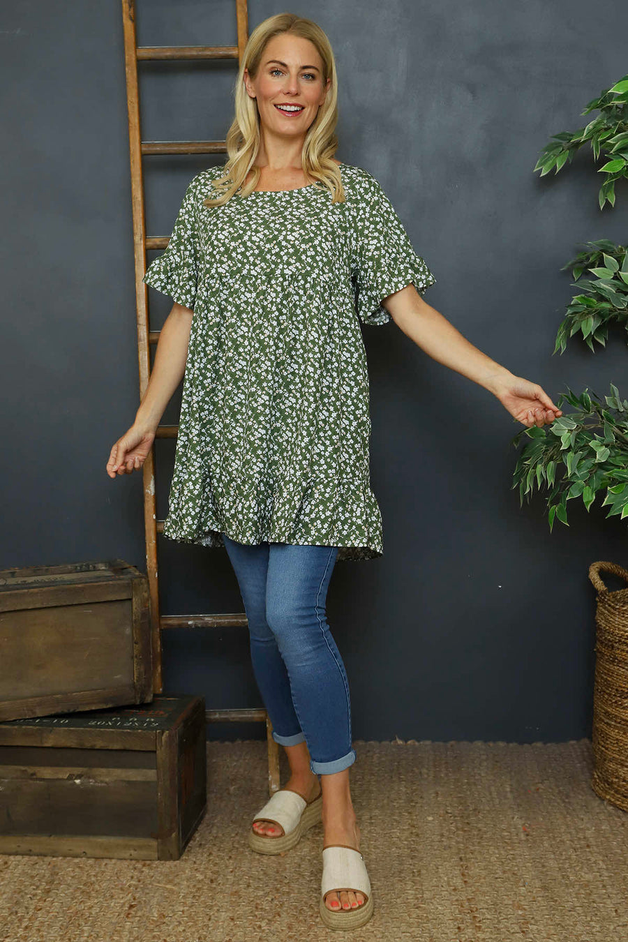 Pamber Ditsy Print Tunic Khaki Khaki - Pamber Ditsy Print Tunic Khaki Khaki