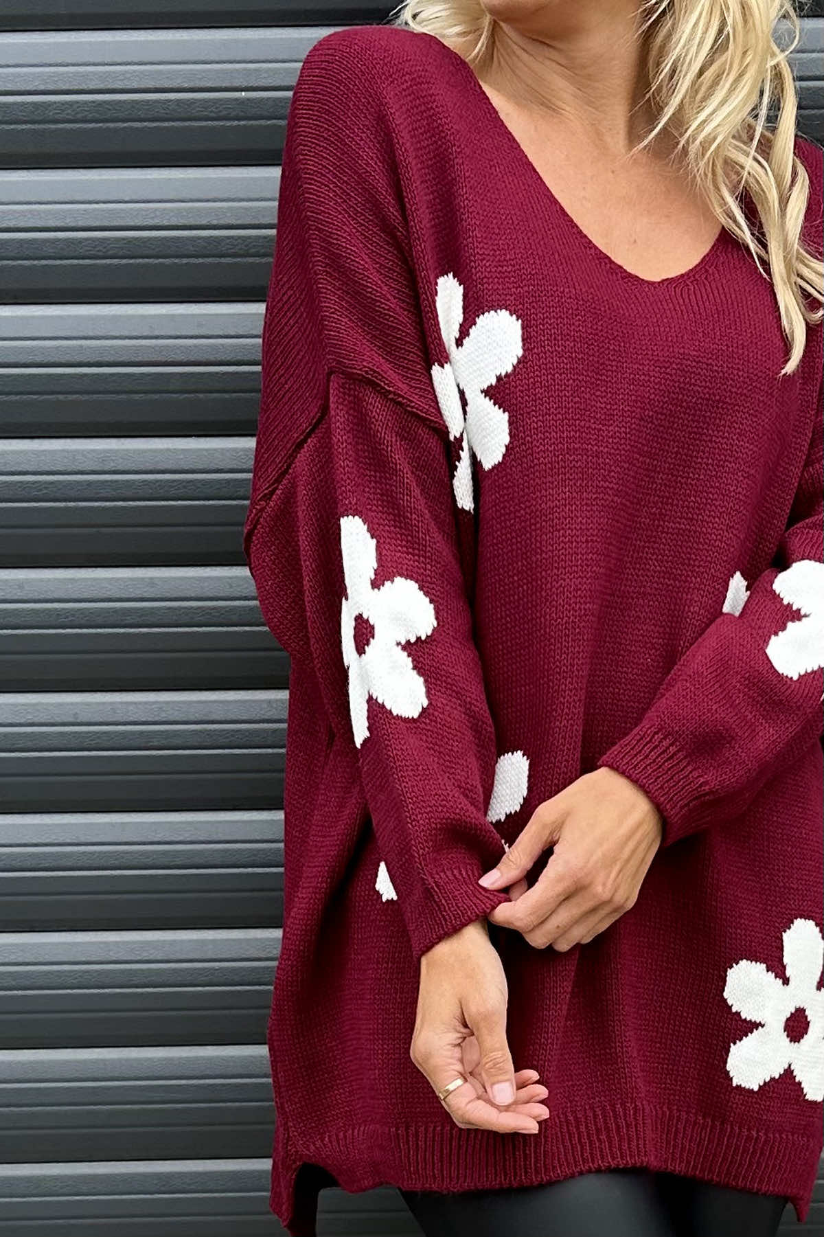 Valerie Flower Knitted Jumper Wine Wine - Valerie Flower Knitted Jumper Wine Wine