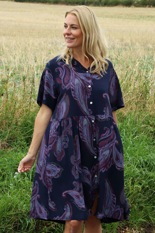 Jojo Print Button Dress Navy