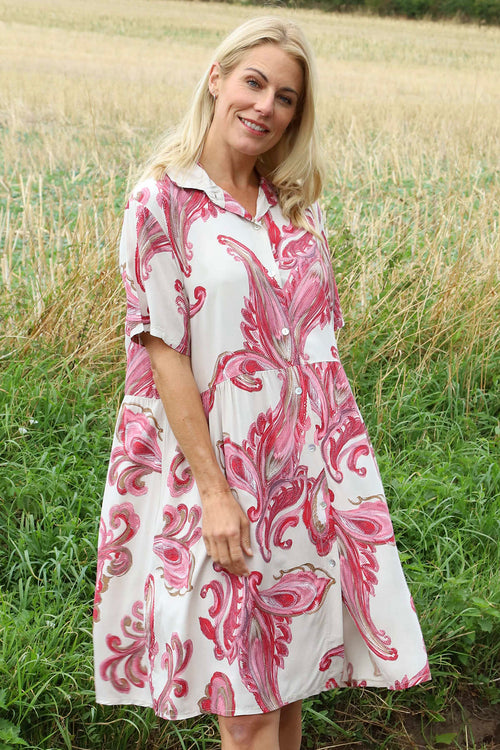 Jojo Print Button Dress Stone