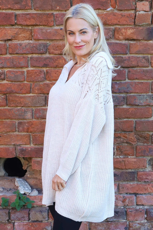 Final OneMade in Italy Made in ItalyRania Collared Knitted Jumper Stone