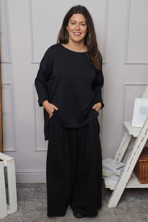 New InLast 2Made in Italy Made in ItalyCharla Dipped Hem Cotton Top Black