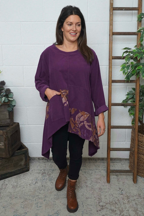 New InLast 2Made in Italy Made in ItalyBerenice Print Detail Needlecord Top Purple