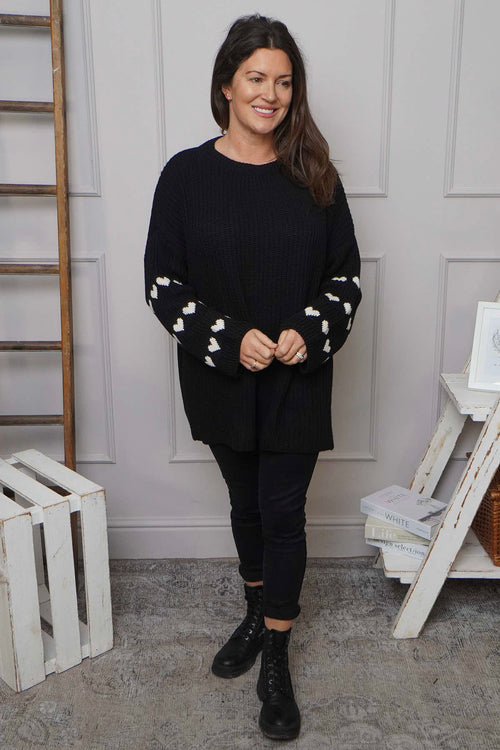 New InAvailable to Pre-OrderMade in Italy Made in ItalyIrma Heart Sleeve Knitted Jumper Black