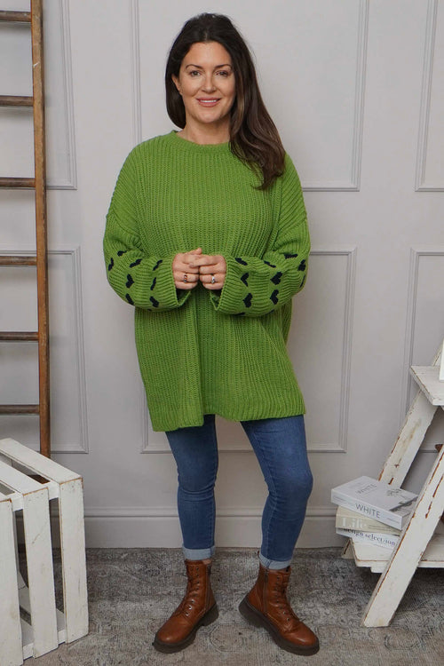 New InAvailable to Pre-OrderMade in Italy Made in ItalyIrma Heart Sleeve Knitted Jumper Green