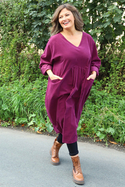 New InAvailable to Pre-OrderMade in Italy Made in ItalyDinah V-Neck Needlecord Dress Purple