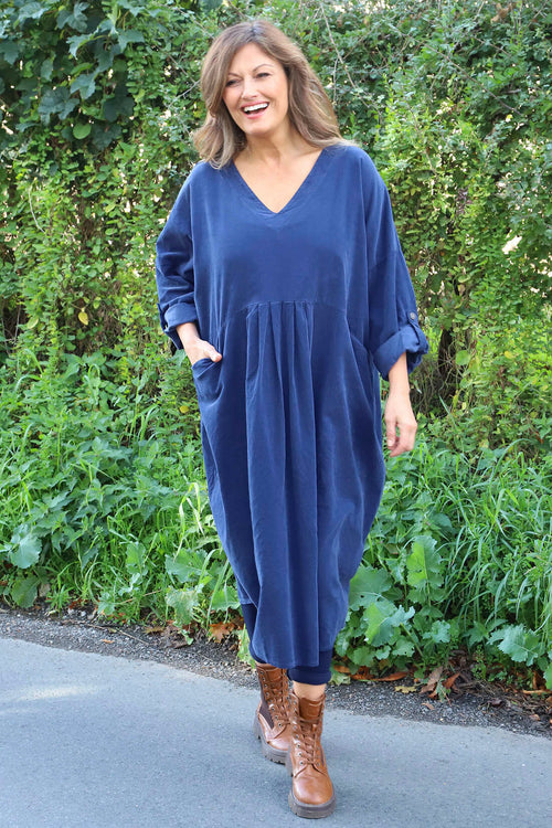 New InAvailable to Pre-OrderMade in Italy Made in ItalyDinah V-Neck Needlecord Dress Navy