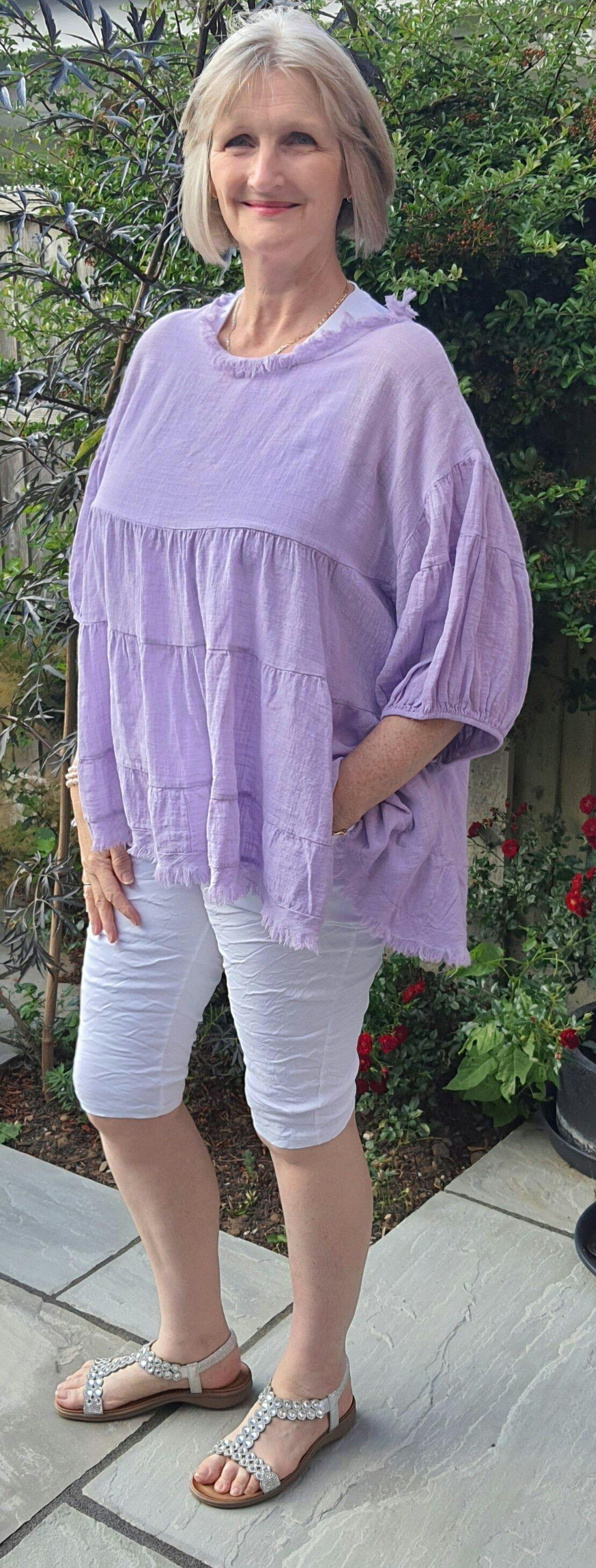 Dreamily soft and super stylish! The Made in Italy Bingham Tiered Top features frayed detailing around the neckline and hemline with statement puff sleeves. This gorgeous style can be paired with jeans. Crafted from 50% cotton 50% Linen.