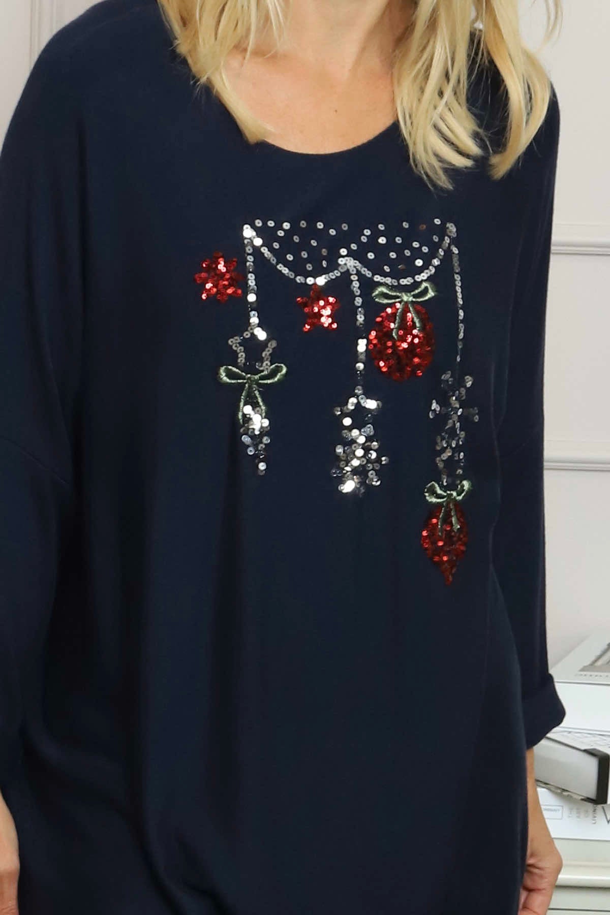 Sparkle this festive season with the Lillian Christmas Jumper. Designed with long sleeves and a classic round neckline, it offers cosy comfort for chilly days. The sequin bauble design adds a festive shimmer, making it an ideal choice to celebrate the holidays in style and warmth.