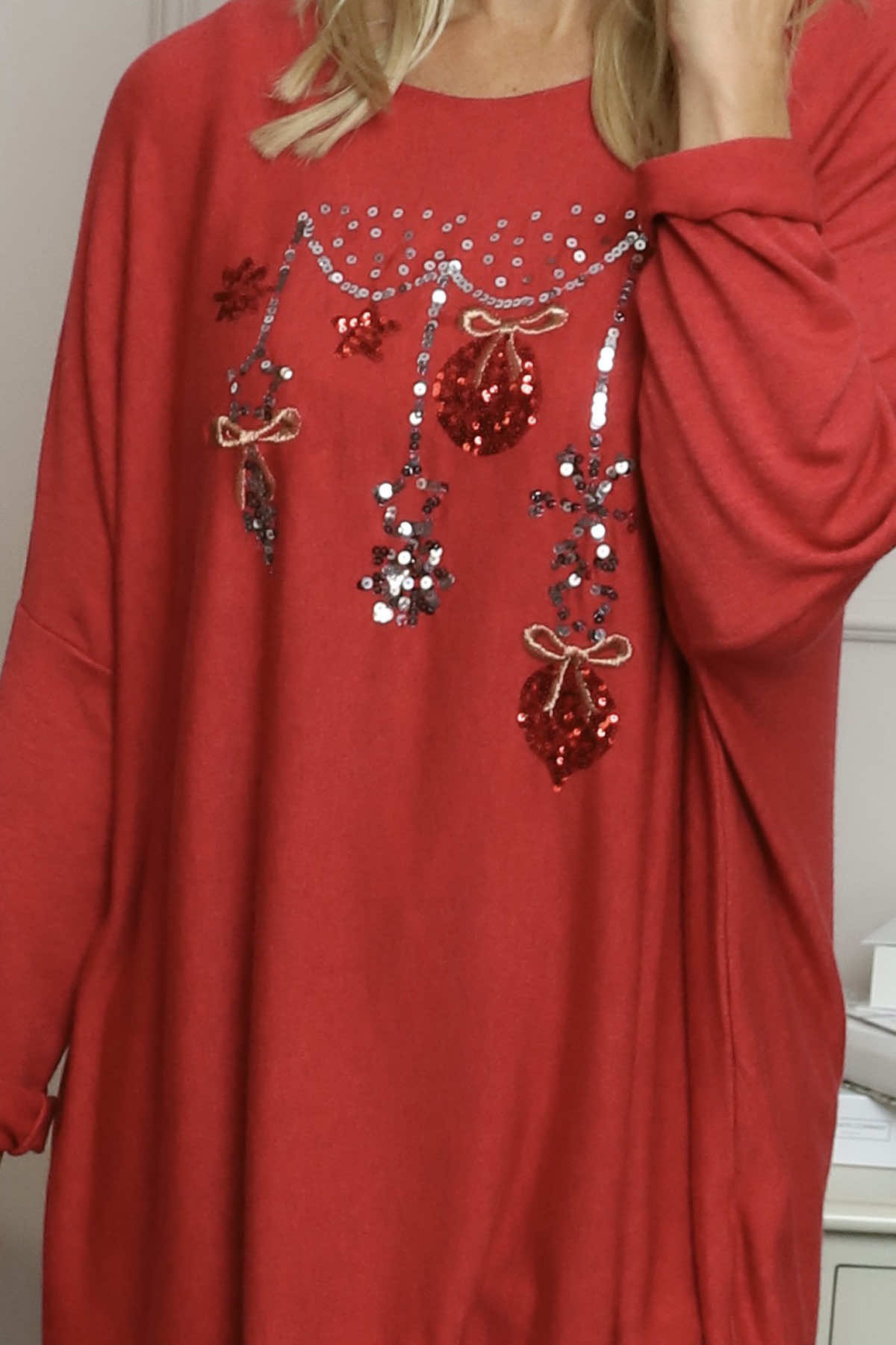 Sparkle this festive season with the Lillian Christmas Jumper. Designed with long sleeves and a classic round neckline, it offers cosy comfort for chilly days. The sequin bauble design adds a festive shimmer, making it an ideal choice to celebrate the holidays in style and warmth.