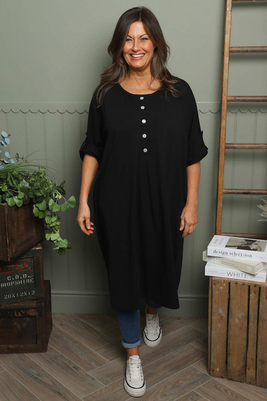 The Claire Cotton Dress combines everyday comfort with thoughtful design details. Crafted from soft cotton, this dress features a classic round neckline and charming button detailing down the front. Practical side pockets offer convenient storage for your essentials, making it perfect for casual outings or relaxed days at home. A versatile wardrobe staple that feels as good as it looks.
