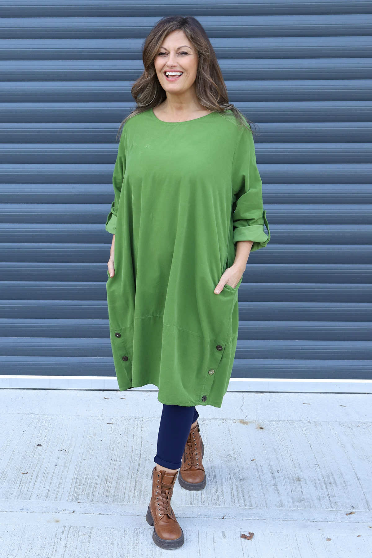 Elevate your wardrobe with our Deborah Needlecord Dress. This versatile piece features a fine needlecord fabric that is both comfortable and easy to dress up or down. With a round neckline, button back sleeves, you can wear it as a tunic or dress for any occasion.