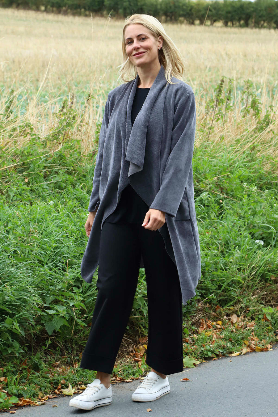 Dorothy Cord Waterfall Cardigan Mid Grey