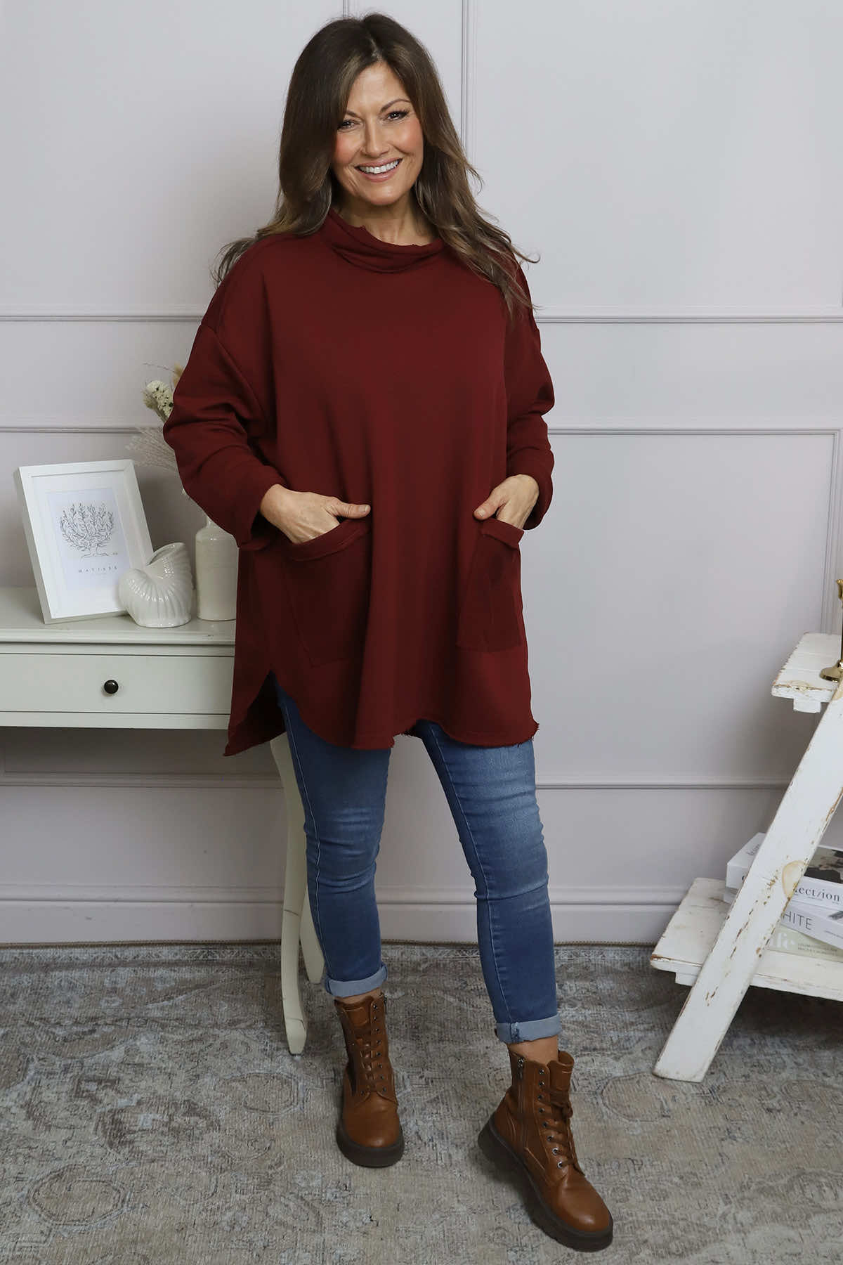 Introducing the Katherine Cowl Pocket Top. This unique top offers a fresh approach to your autumn wardrobe, with its cosy cowl neckline and stylish reverse seam detailing. Plus, with the addition of pockets, it's both fashionable and functional.