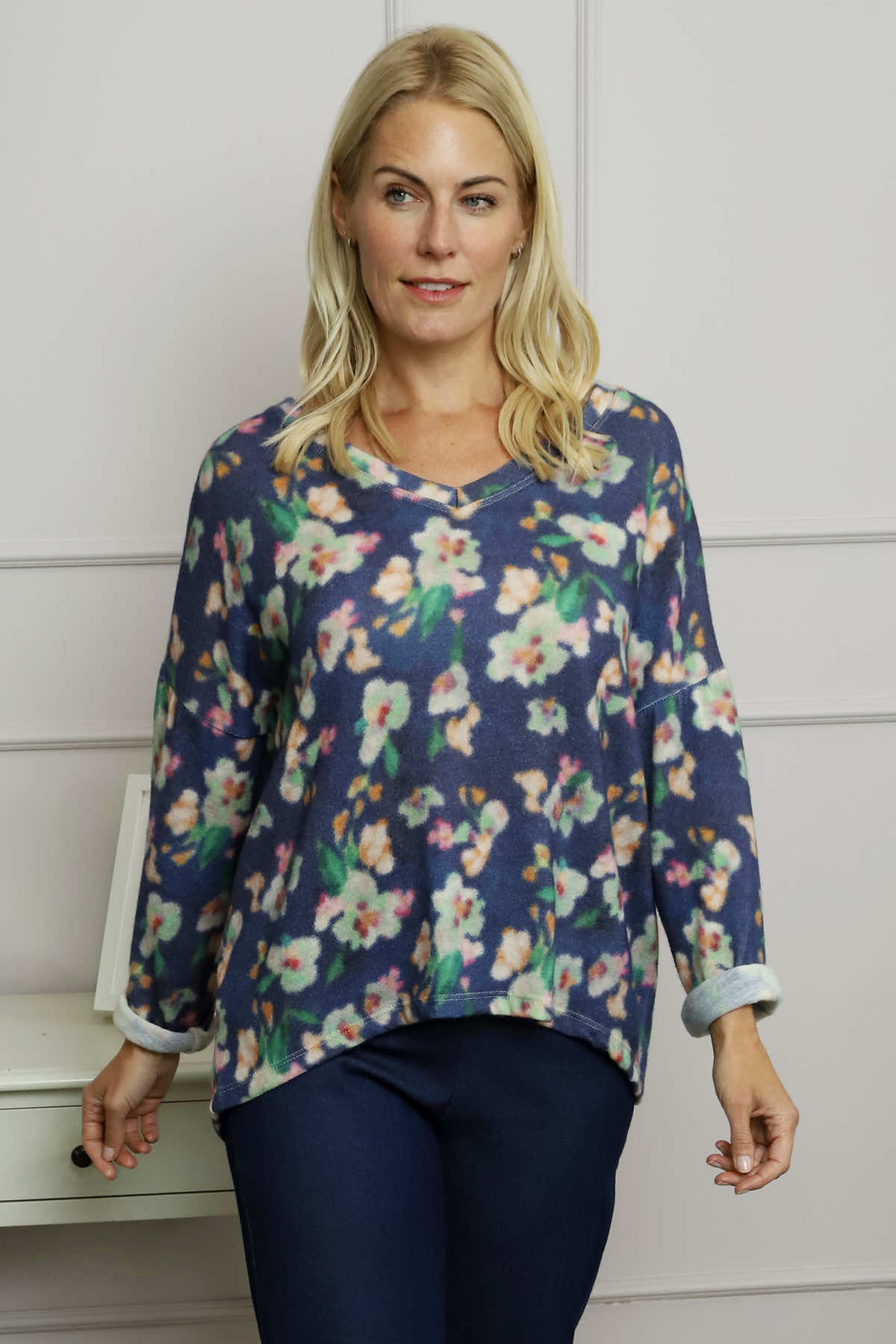 Get cosy in the Kirsty Flower V-Neck Knit Top. The Kirsty Flower V-Neck Knit Top designed to keep you comfortable with its soft knit fabric and long sleeves. The flattering V neckline complements the delicate flower pattern, adding a gentle touch of elegance to your everyday style. Perfect for layering or wearing on its own, this top offers warmth and charm in equal measure.
