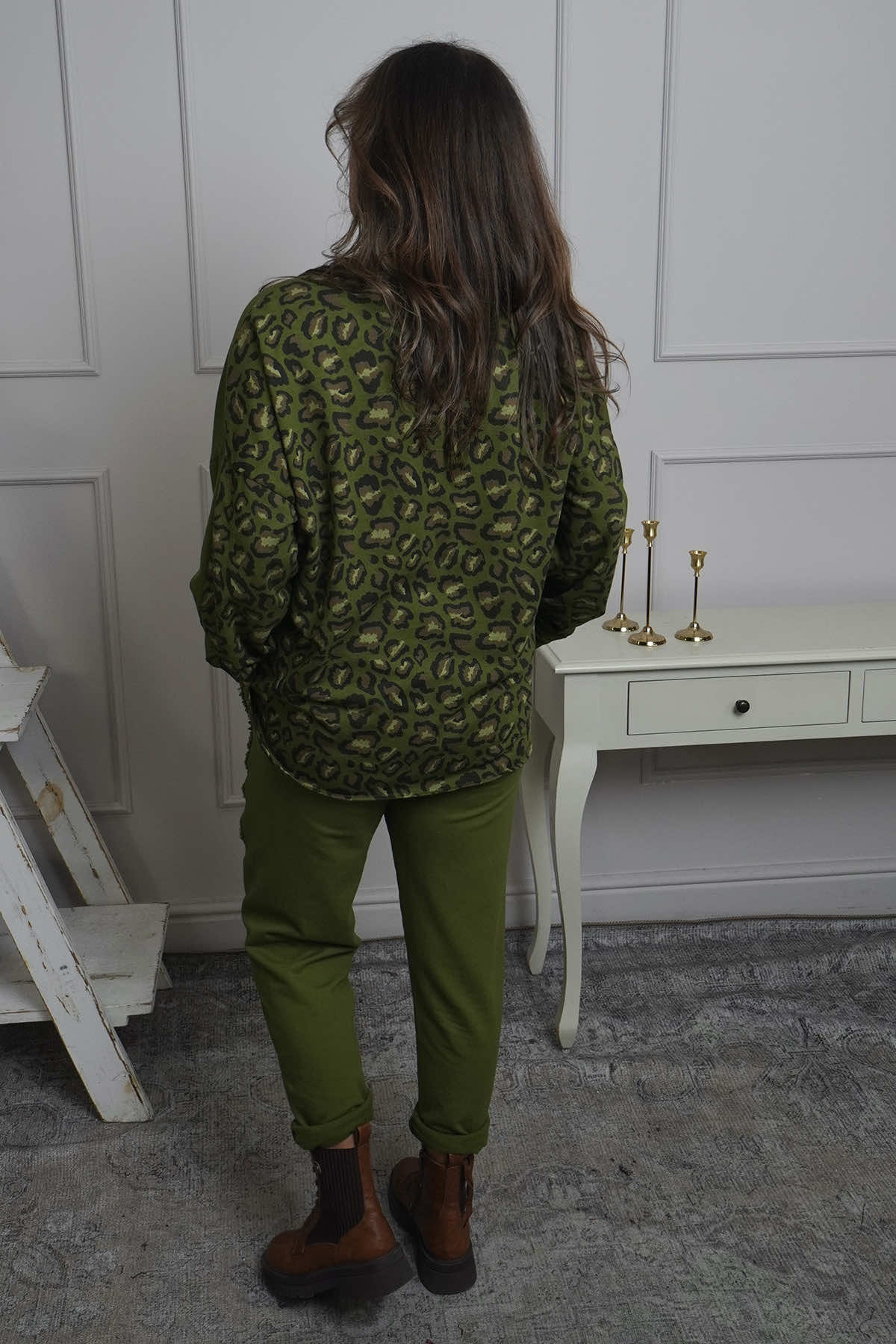 Nicky Leopard Print Cotton Top Olive