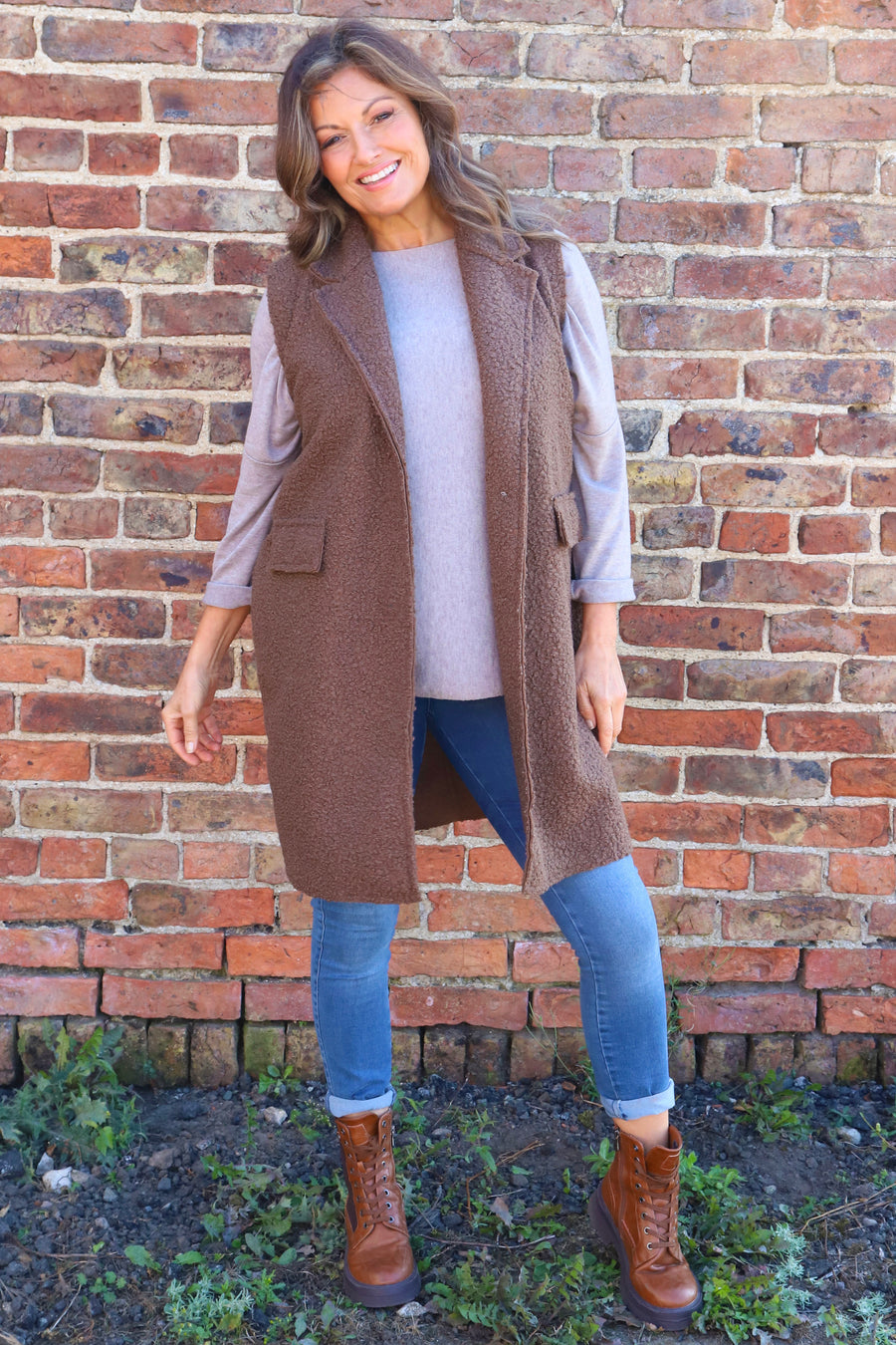 Effortlessly layer up with our Nori Boucle Gilet. Perfect for any occasion, this versatile piece pairs seamlessly with jeans and your favourite autumn shoes. Stylish and easy to wear, it's the perfect addition to your wardrobe.