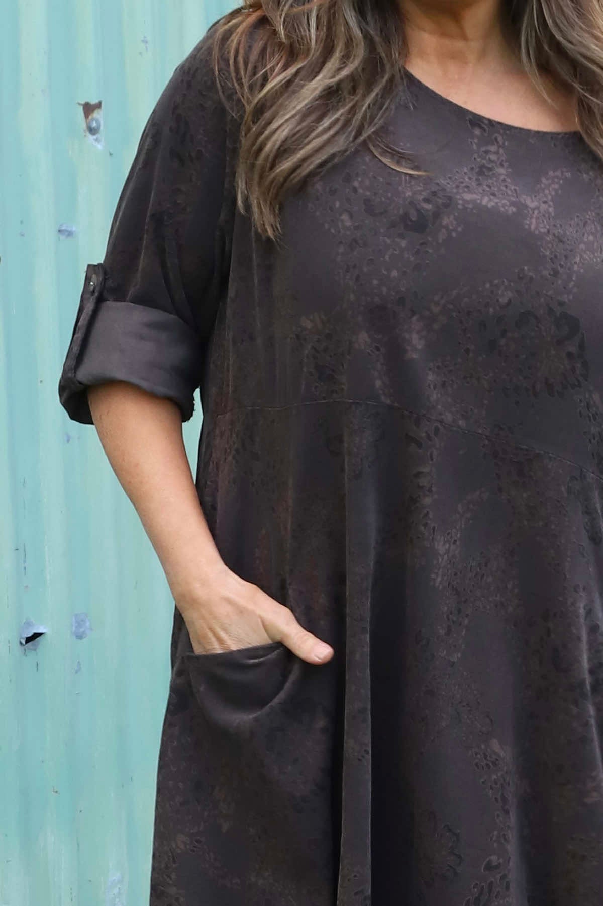 Penelope Pattern Pocket Needlecord Dress Cocoa