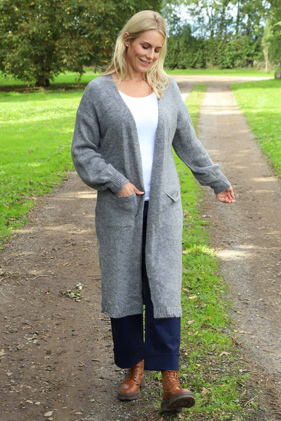 Charlize Pattern Cowl Neck Cotton Dress Mid Grey