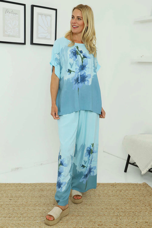Daphne Paisley Wide Leg Trousers Powder Blue