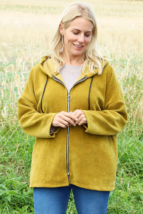 Verys Cord Zip Hooded Jacket Moss