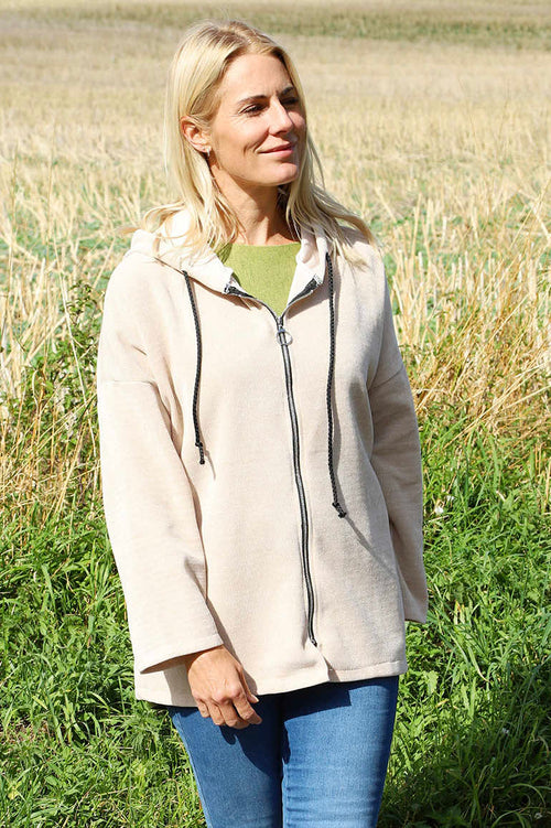Verys Cord Zip Hooded Jacket Stone